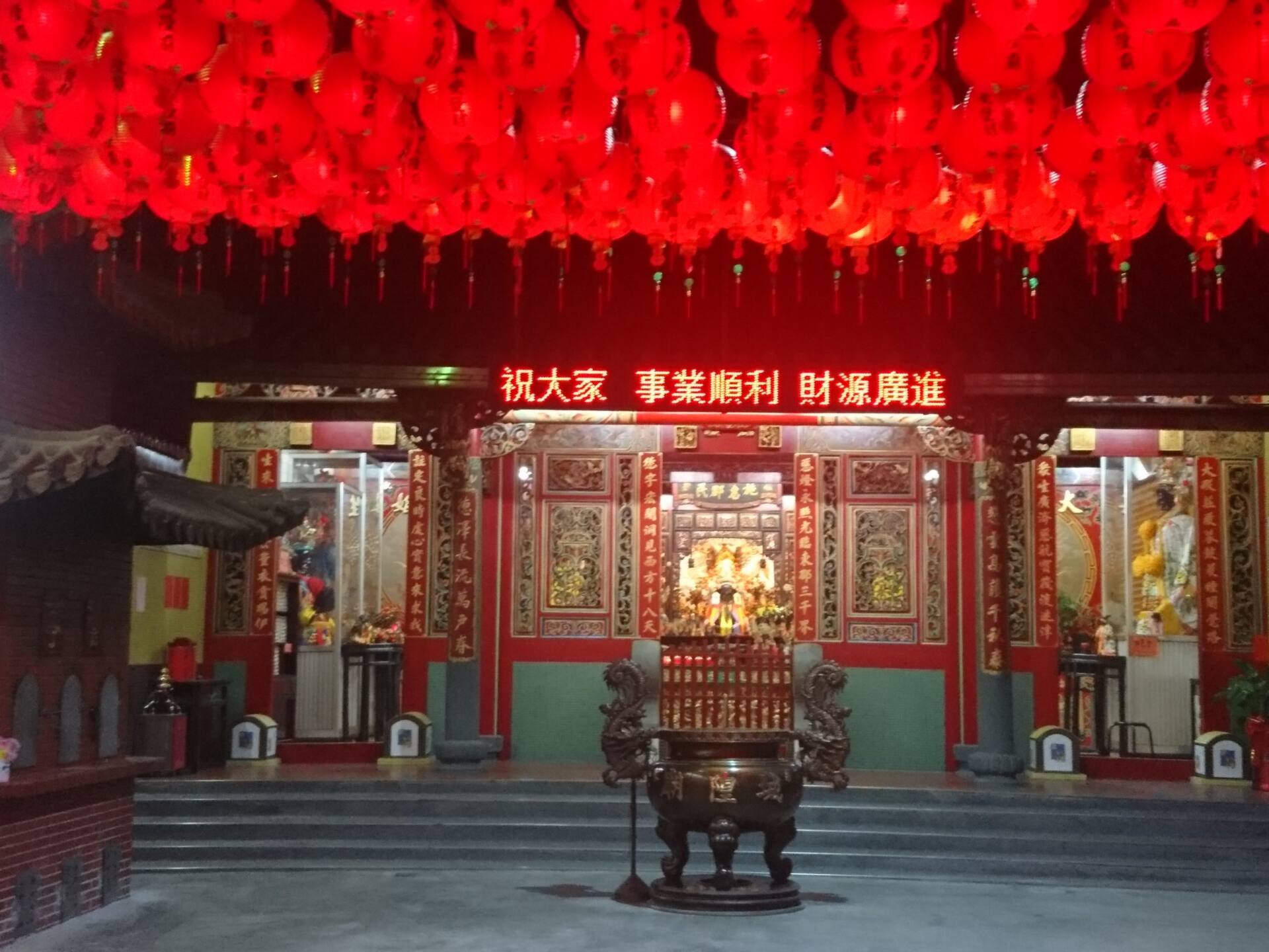 赤い提灯の下を歩いて、正殿前の香炉には城惶廟と大きく書かれています。