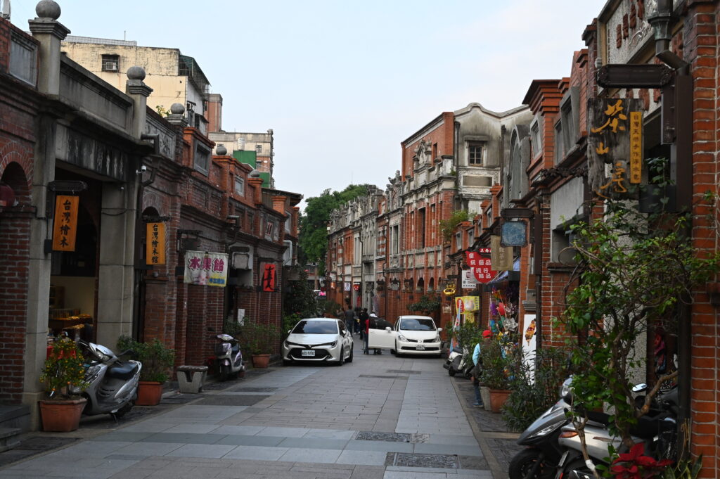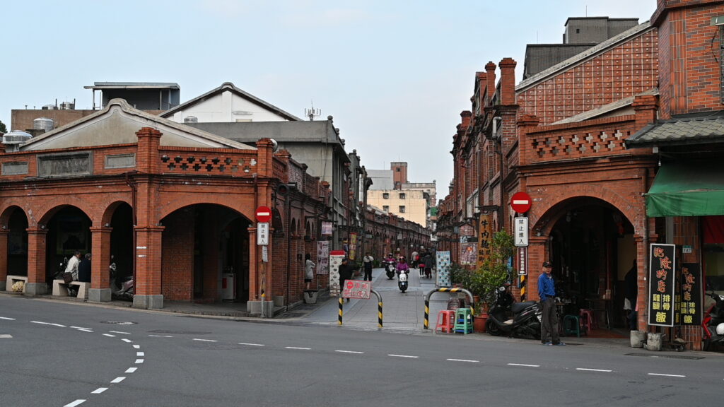 民權街へと右折し、少し歩くと、老街が見えてきました。少し離れたところから見てもかなり目立ちますね。全長が260mの老街です。